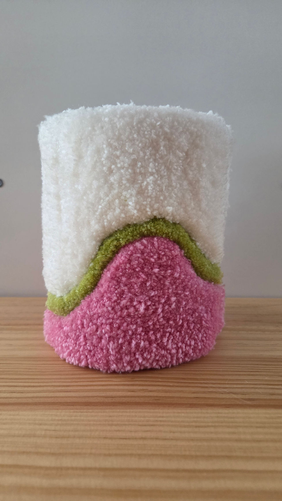 Tu peux choisir de créer un tapis mural ( format carré ou rectangle), une galette de tabouret, ou même un vase en laine.
